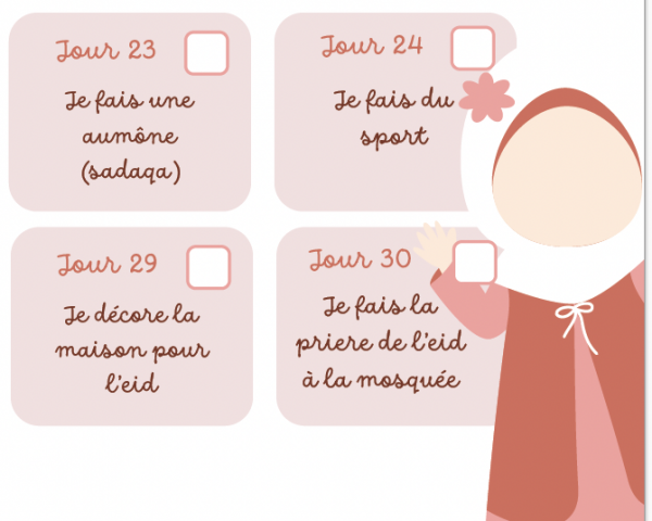 30 cases à cocher au fur & a mesure du ramadan. Il est composé d’Invocations à réciter & d’actions à réaliser