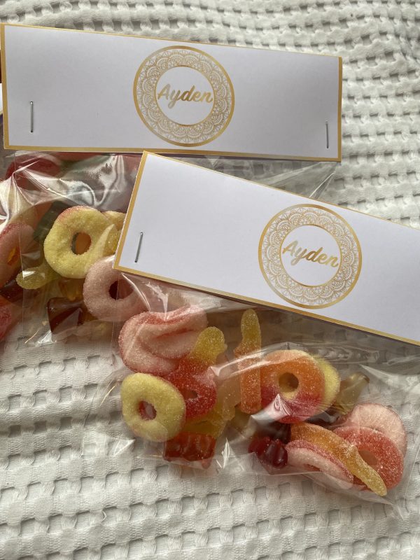 4 sachets bonbons halal personnalisés selon le thème de votre choix.